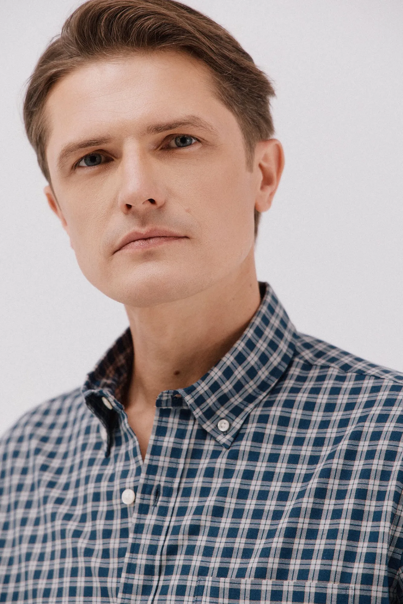 -Cuello con botones, bolsillo en pecho