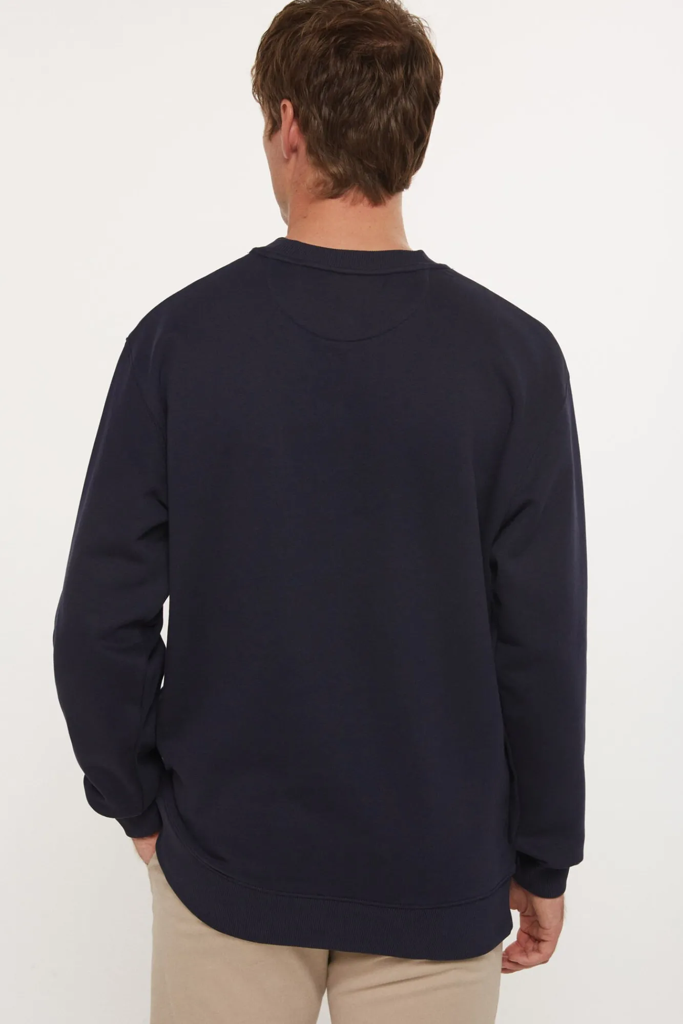-Cuello redondo, bajo y puños acanalados