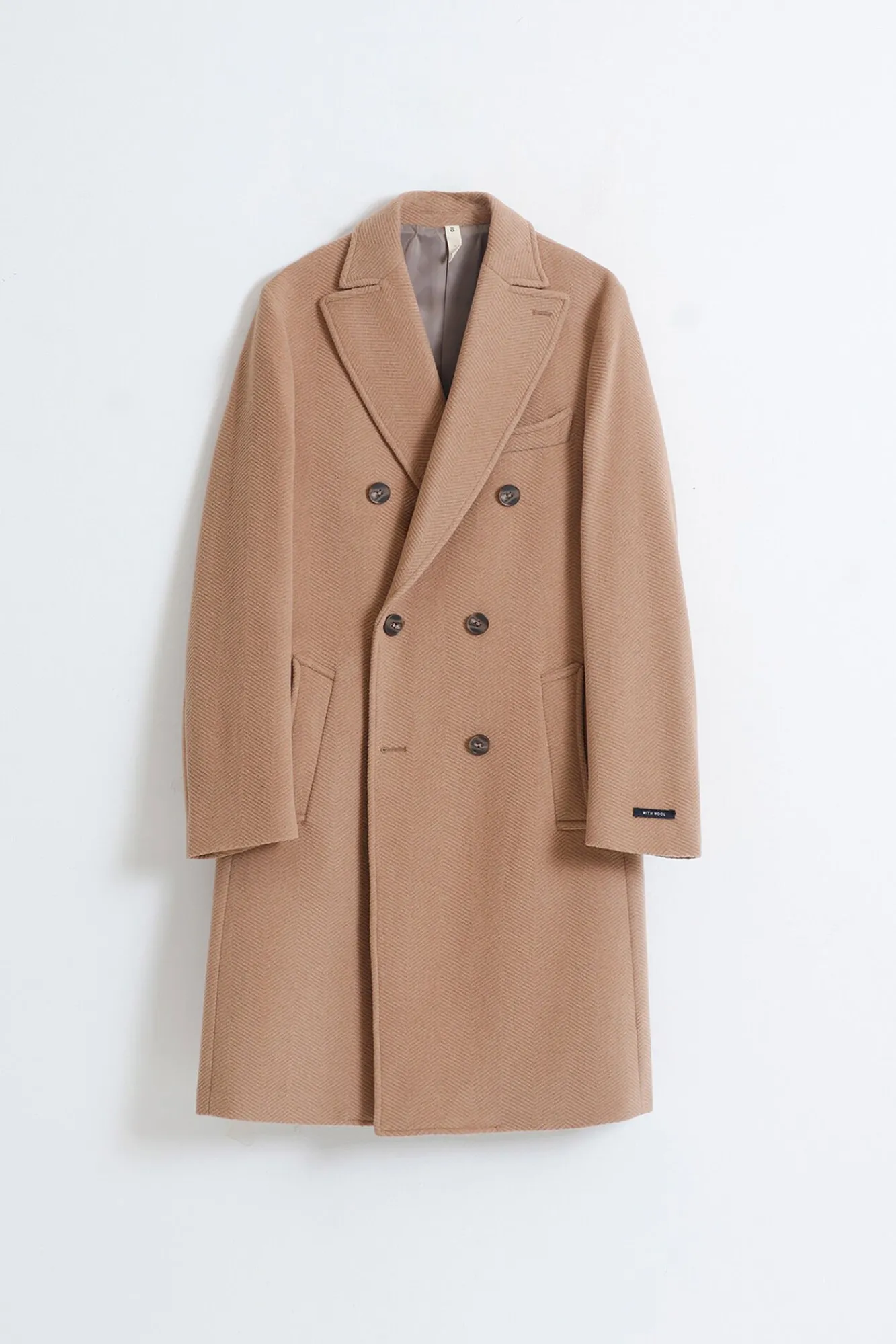 – Abrigo cruzado de paño con lana diseño espiga