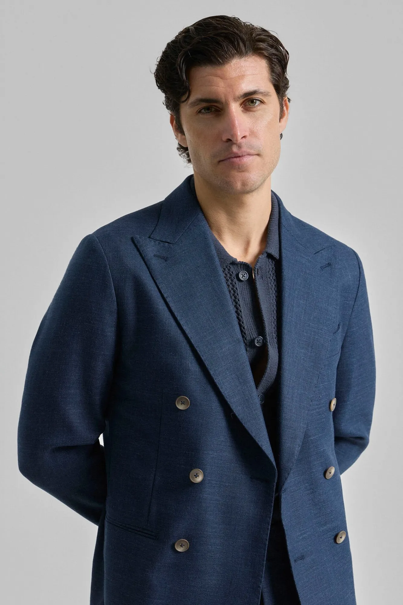 72% poliéster, 25% viscosa, 2% lino, 1% elastano