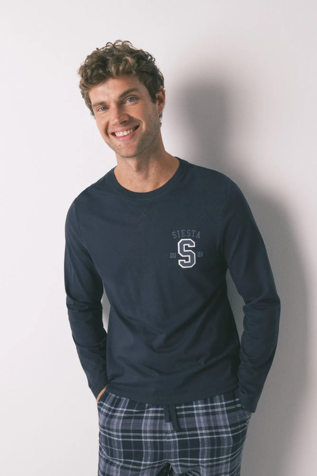 – Pantalón recto con estampado de cuadros, cinturilla elástica con cordón de ajuste a tono y bolsillos laterales.