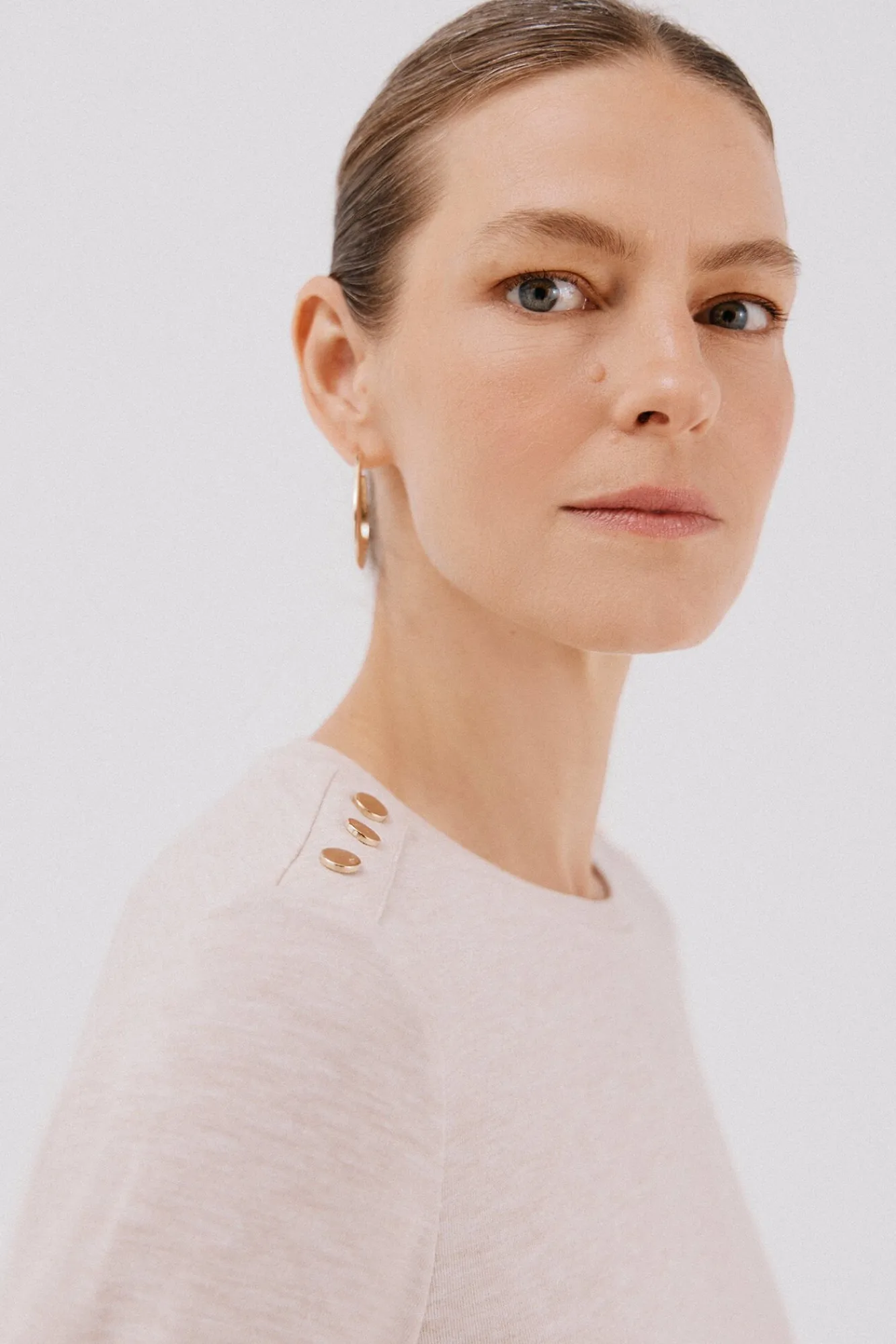 -Escote redondo con botones dorados en hombro