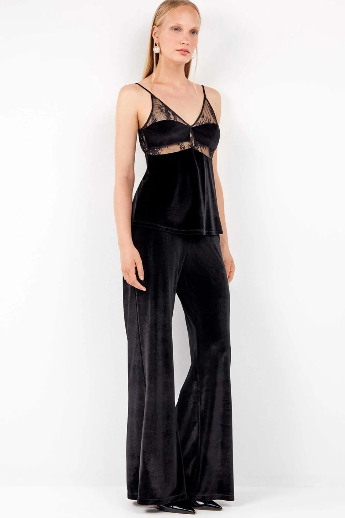Mujer Gisela Pantalones>Pantalón largo de terciopelo elástico con diseño elegante