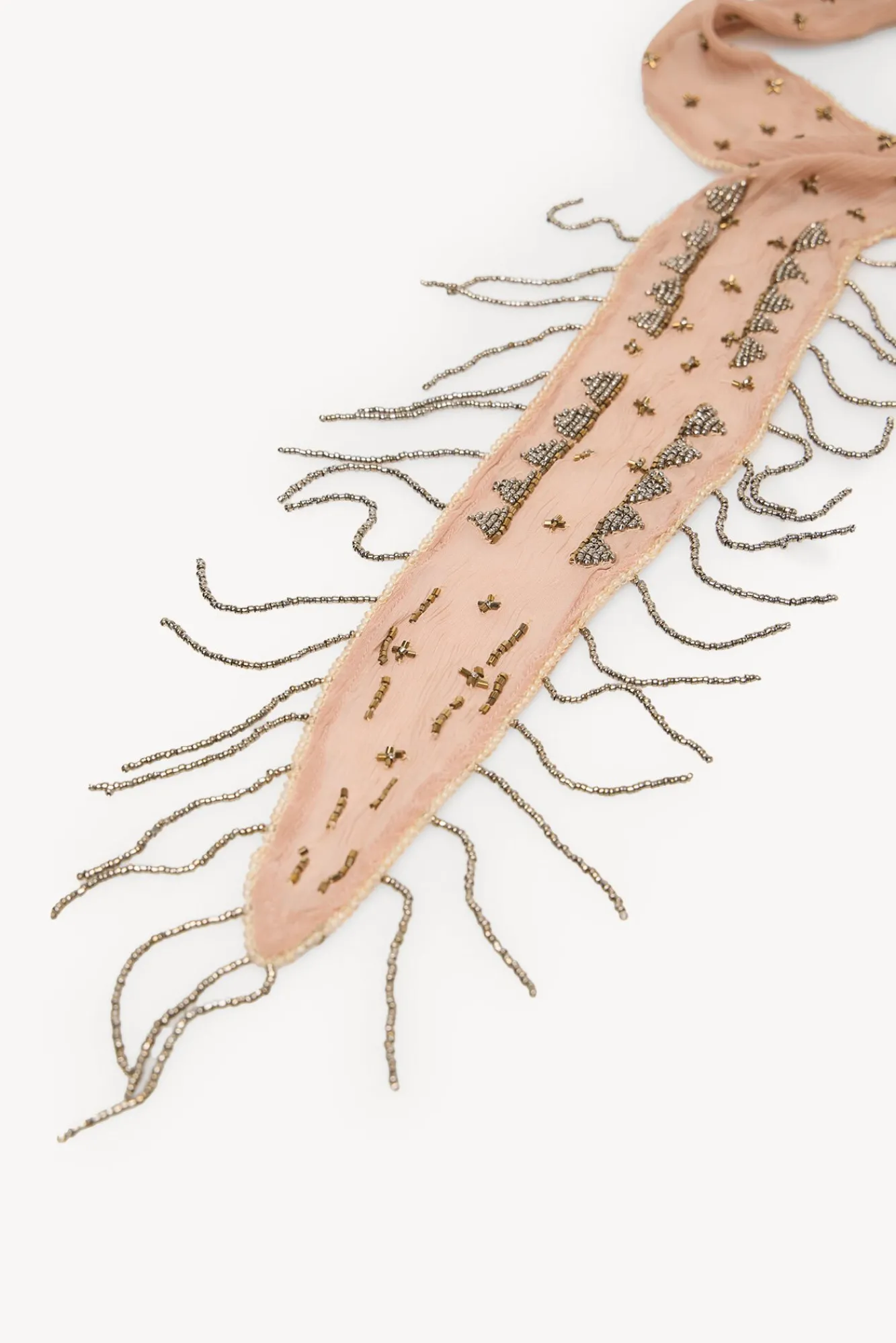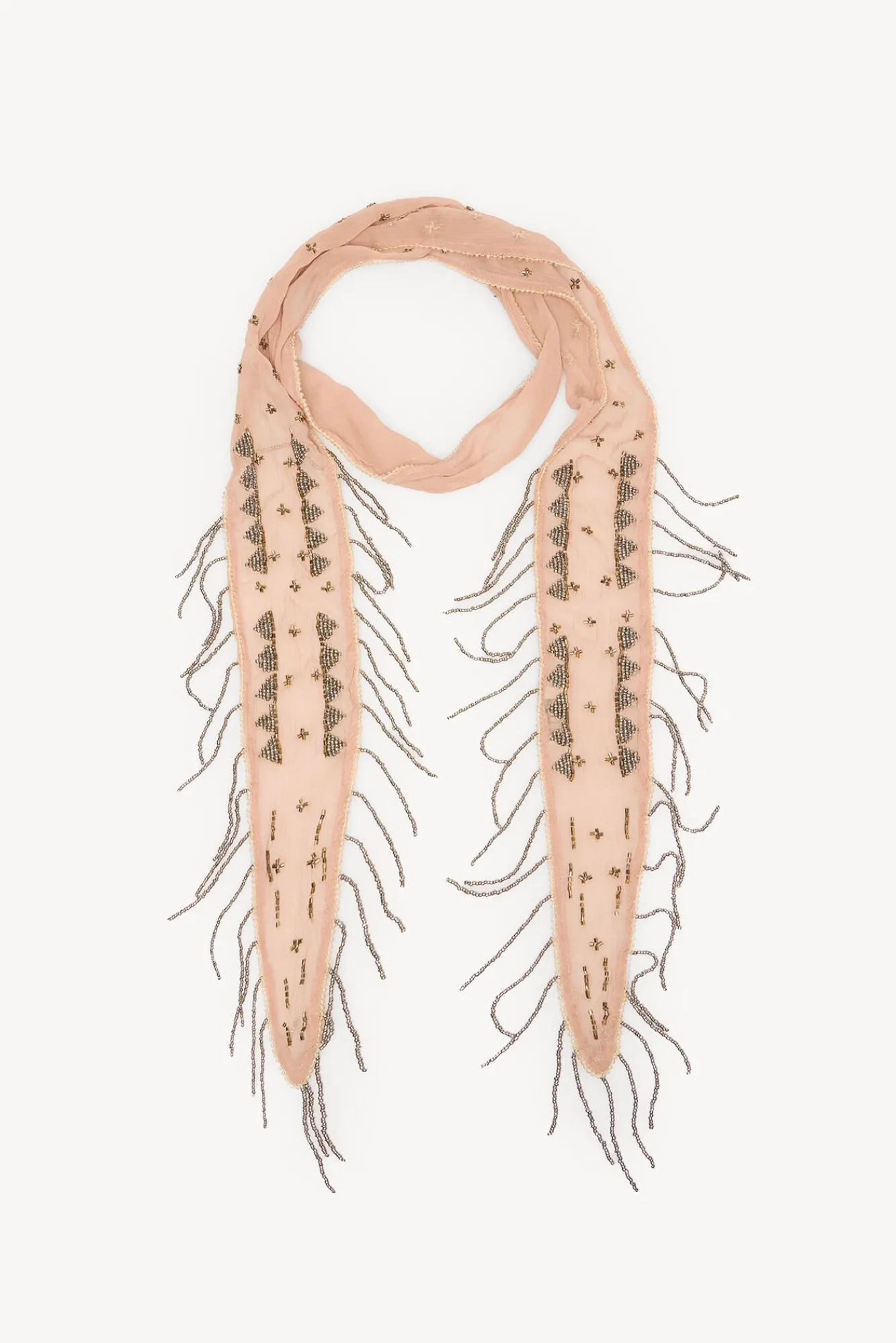 – Fular tipo corbatero bordado con abalorios