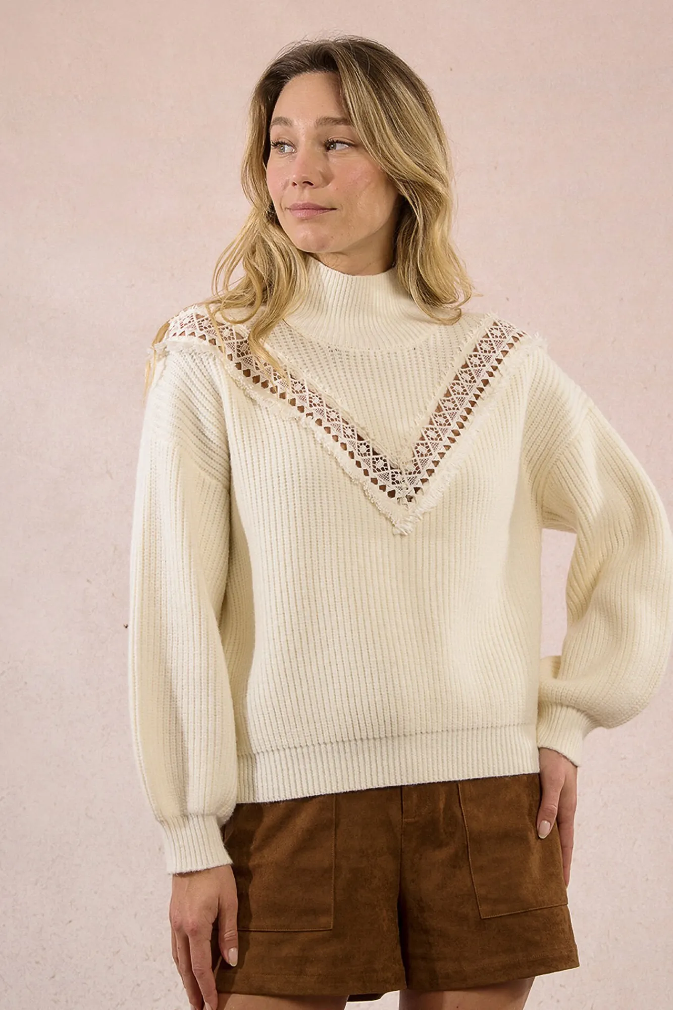 – Modelo con detalle bordado en forma de V en el escote.