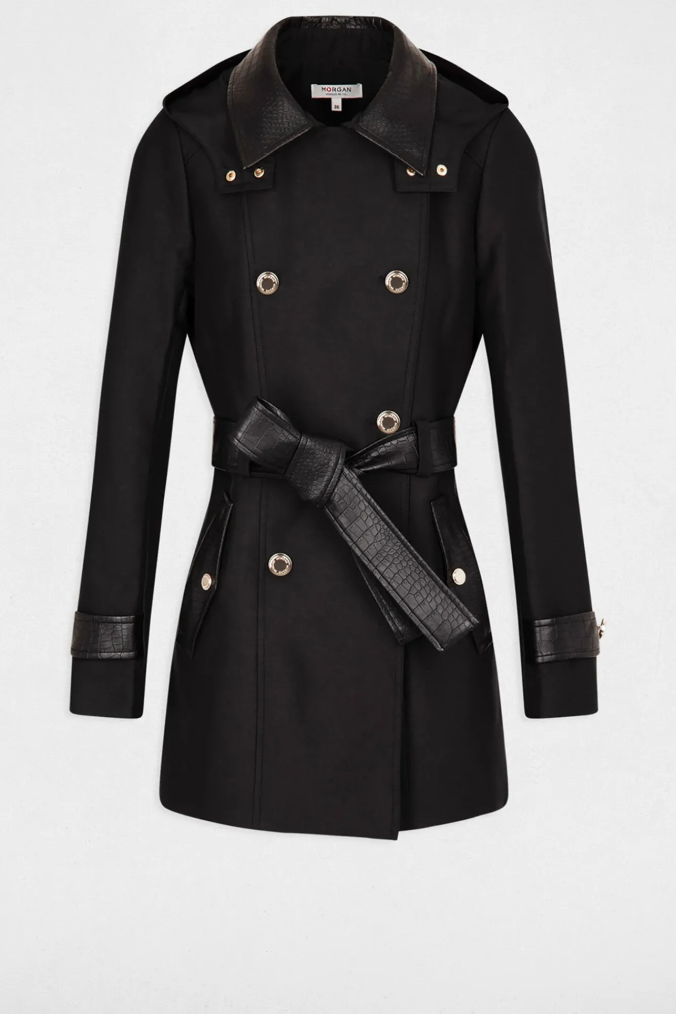 -Apliques cuero sintético en el cuello, la cintura, los puños y en los bolsillos