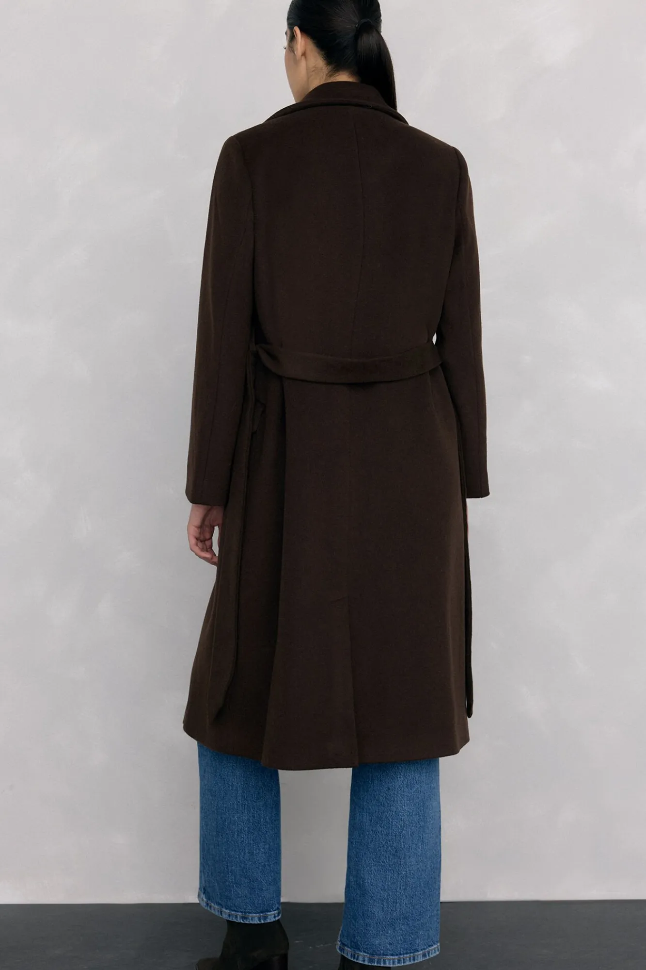 – Cruce de la prenda cruzado con cinturón del mismo tejido para anudarlo