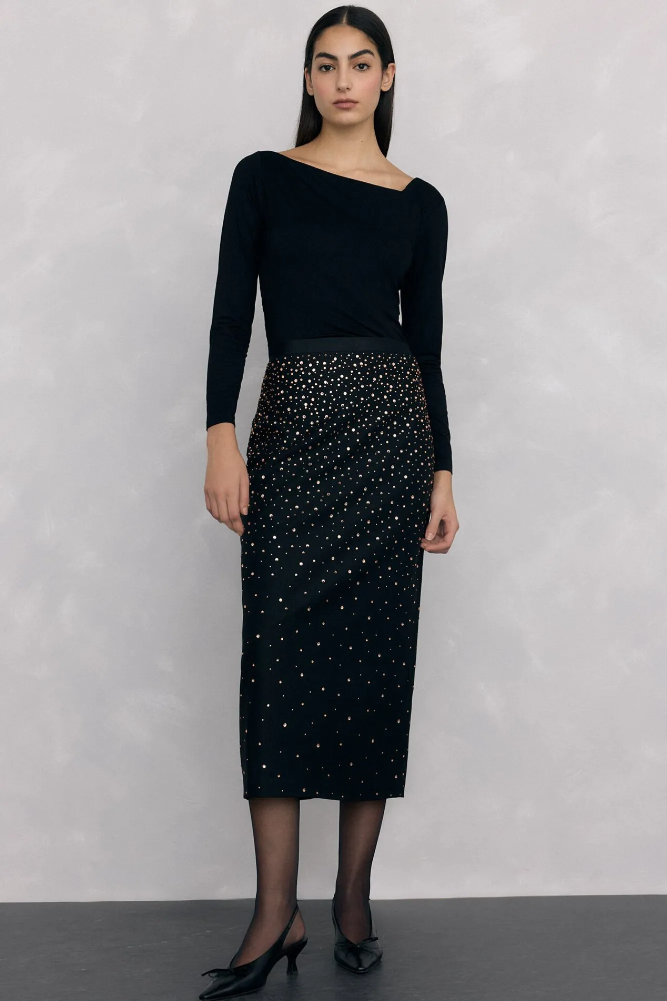 – Manga larga. Frunce en el hombro