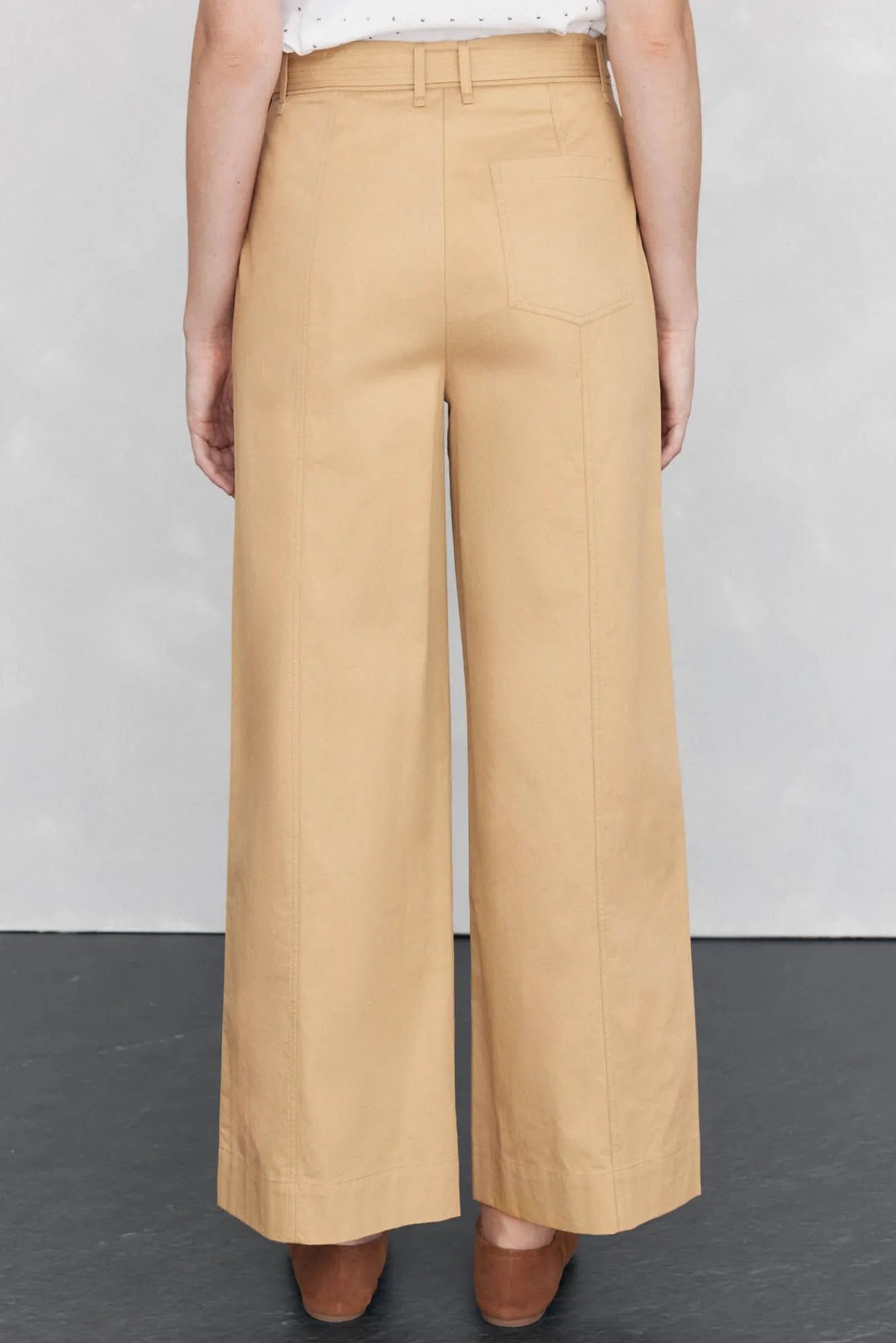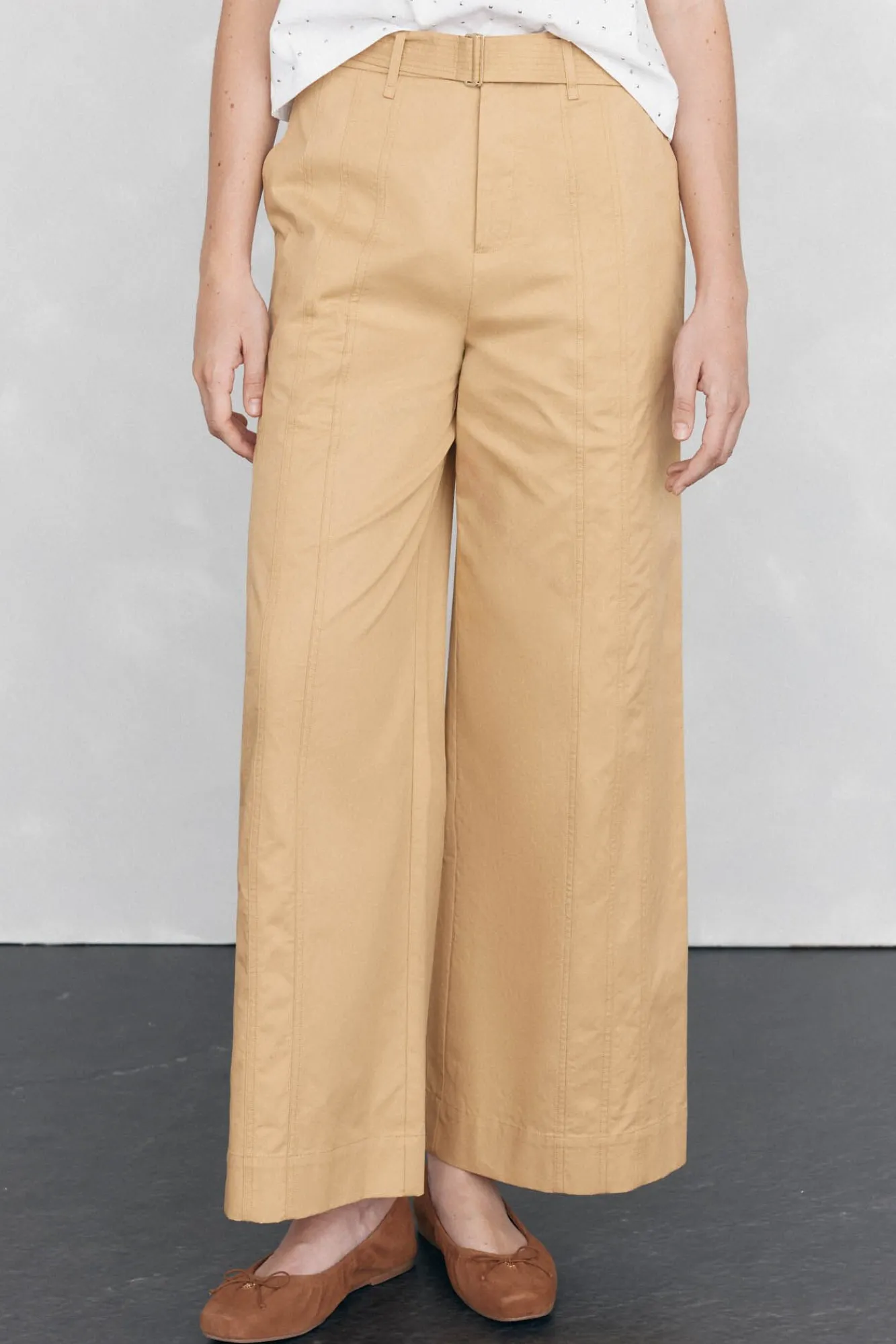 – Cinturilla con trabillas y cinturón del mismo tejido