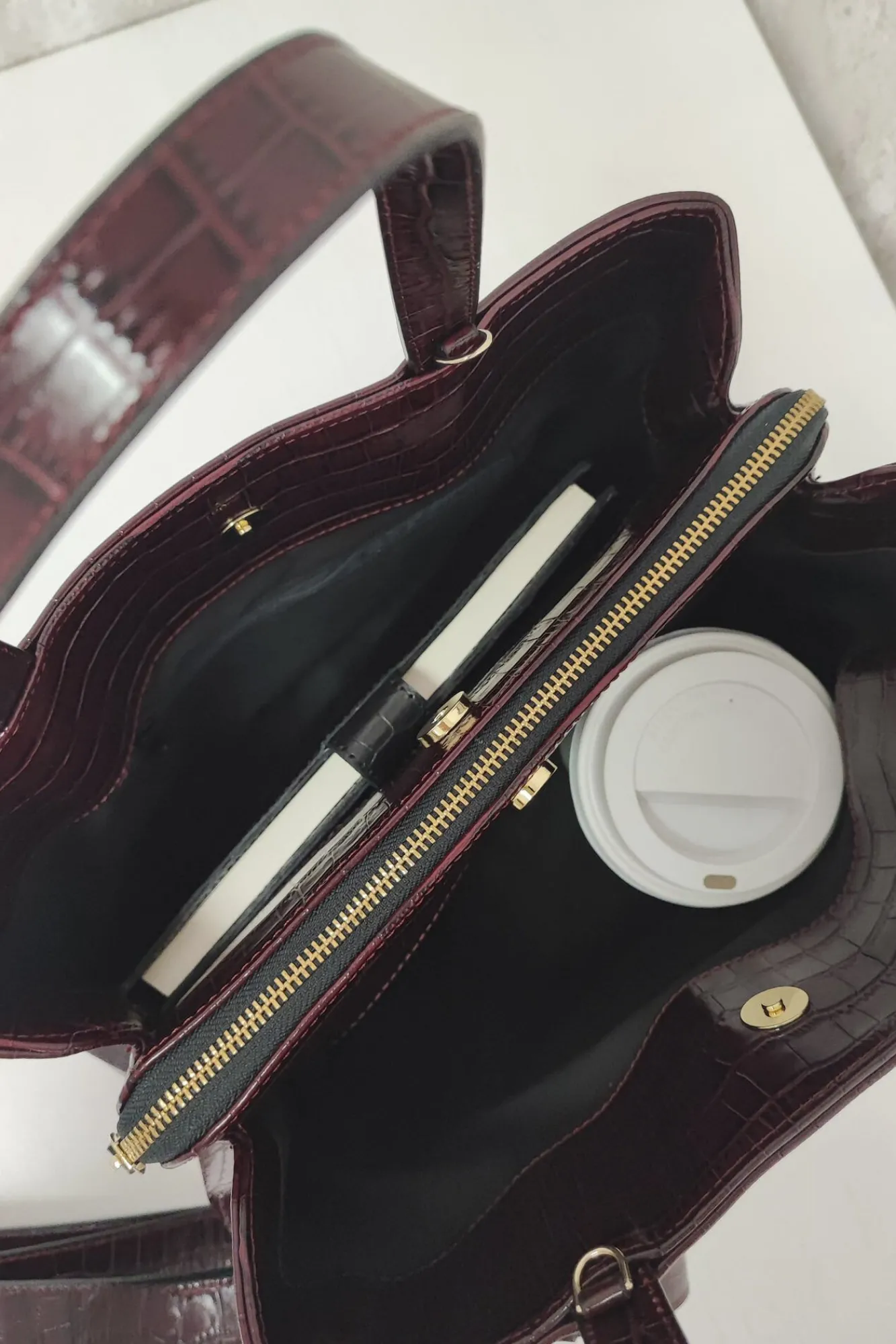 -Interior: forro de tela, bolsillo con cremallera