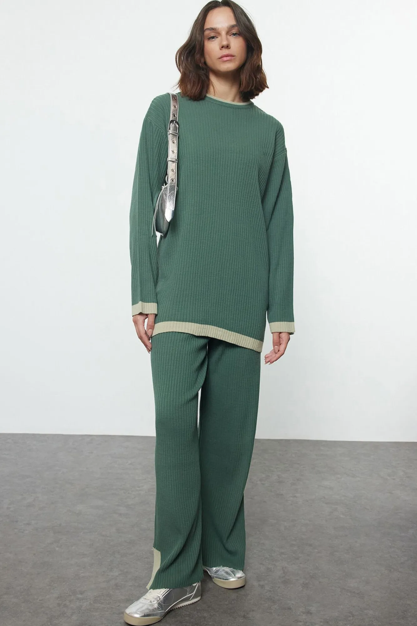 Mujer Trendyol Pijamas|Pijamas>Conjunto pantalón y camiseta punto con ribetes