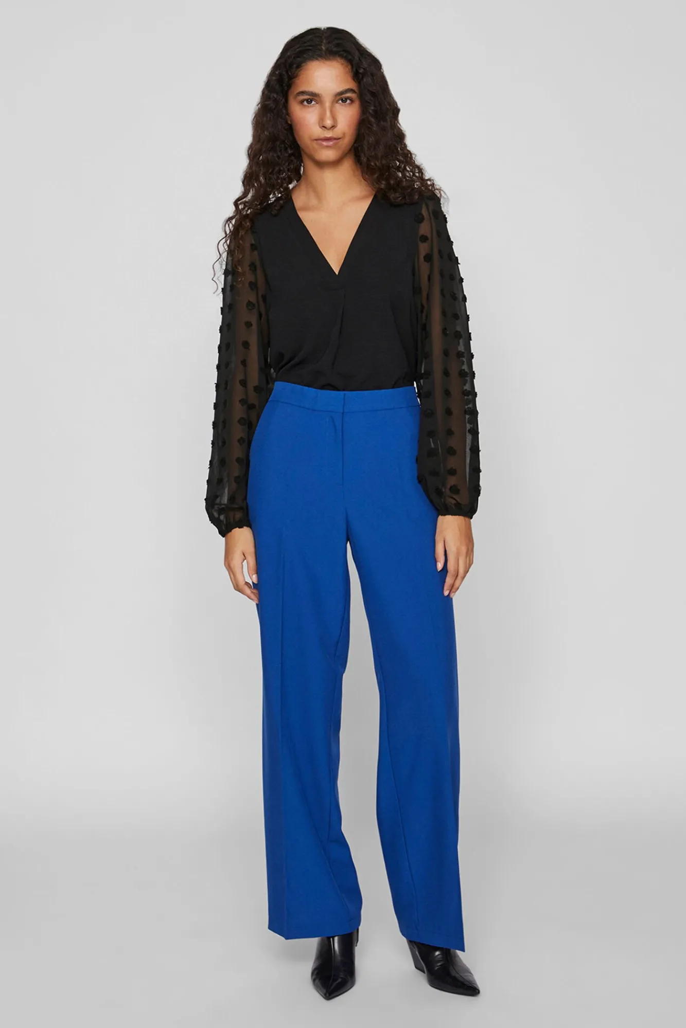 – Mangas semitransparentes, ligeramente abullonadas con elástico en puños