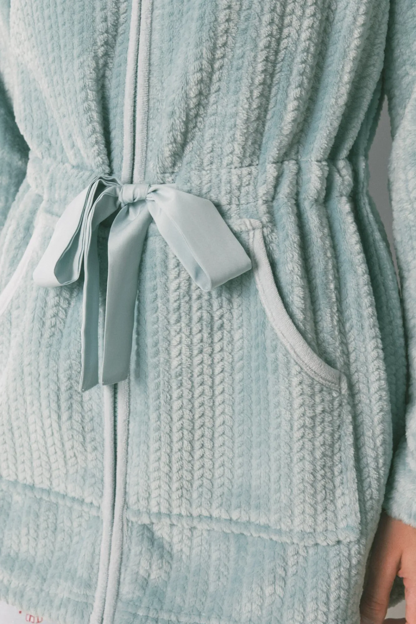 – Lleva bolsillos tipo «canguro» a los laterales y una lazada de satén a la altura de la cintura para ajustar.