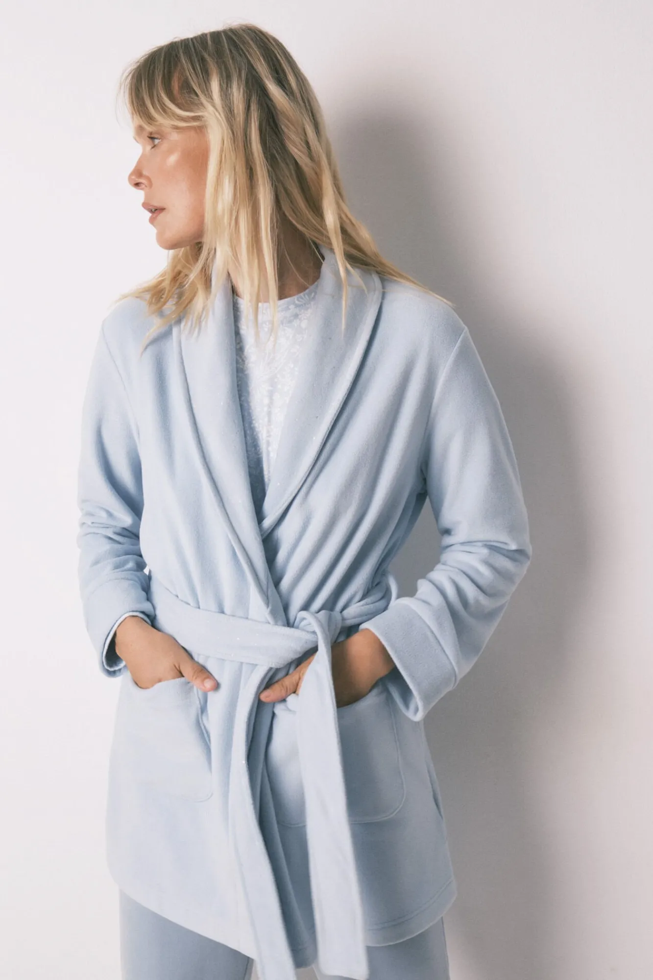– Llévala a juego con un pijama de la colección, y mantén tu estilo también en casa.