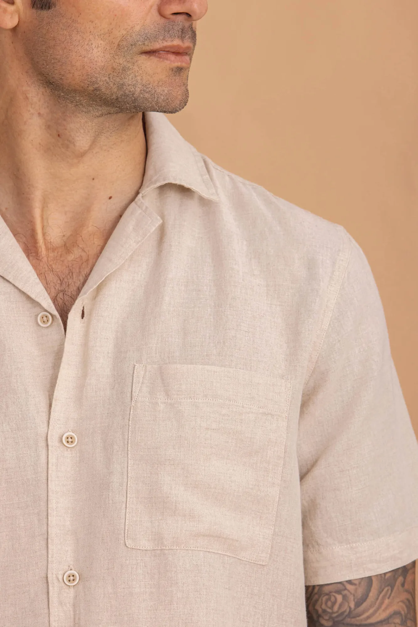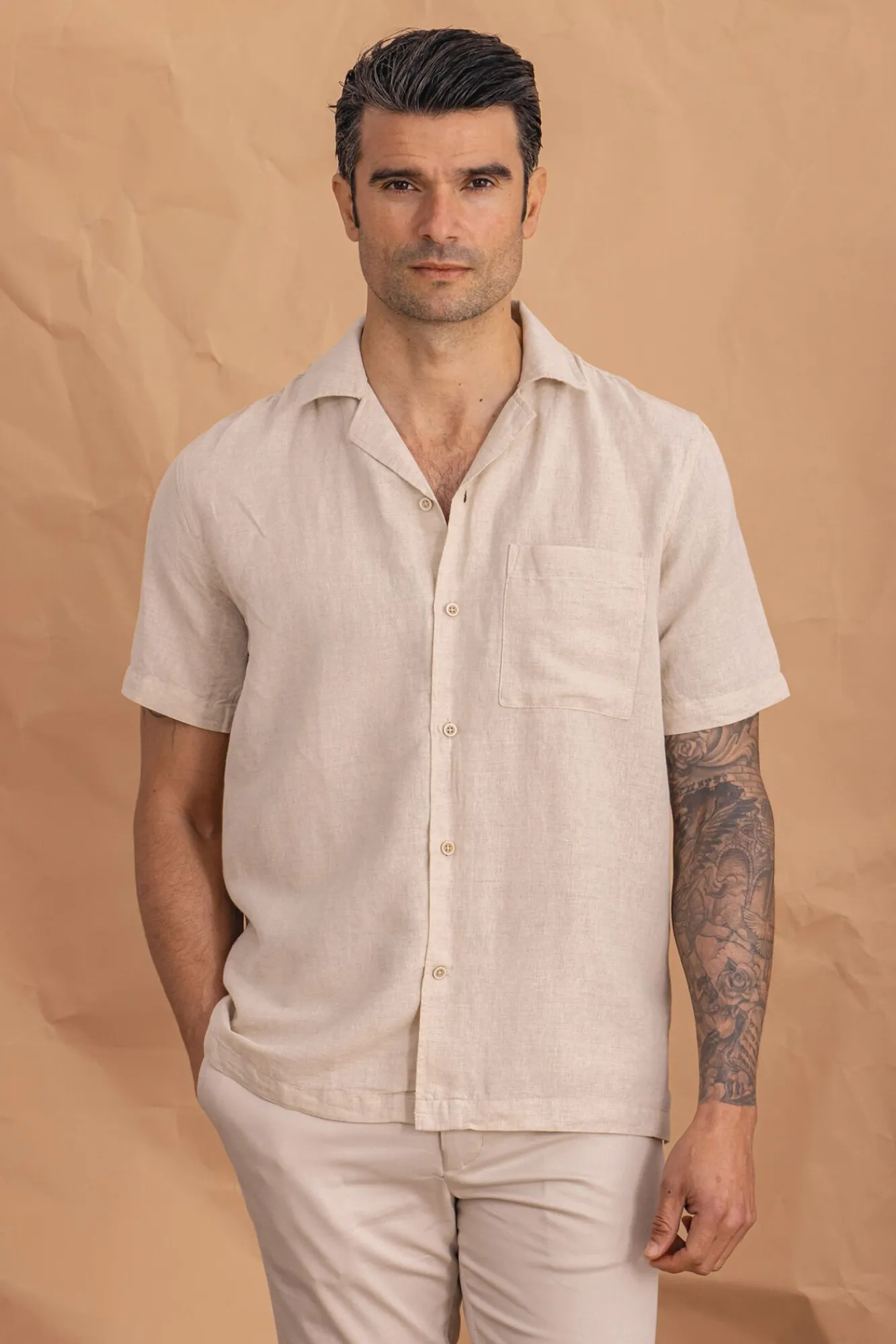 Hombre Celopman Camisas>Camisa Mangas Cortas Con Lino