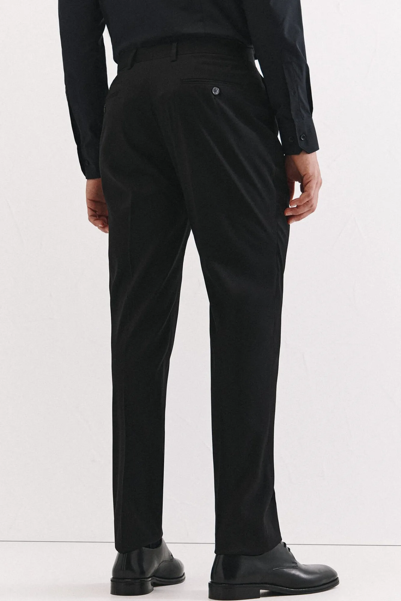 -Cierre cremallera con botón. Dos bolsillos traseros y trabillas