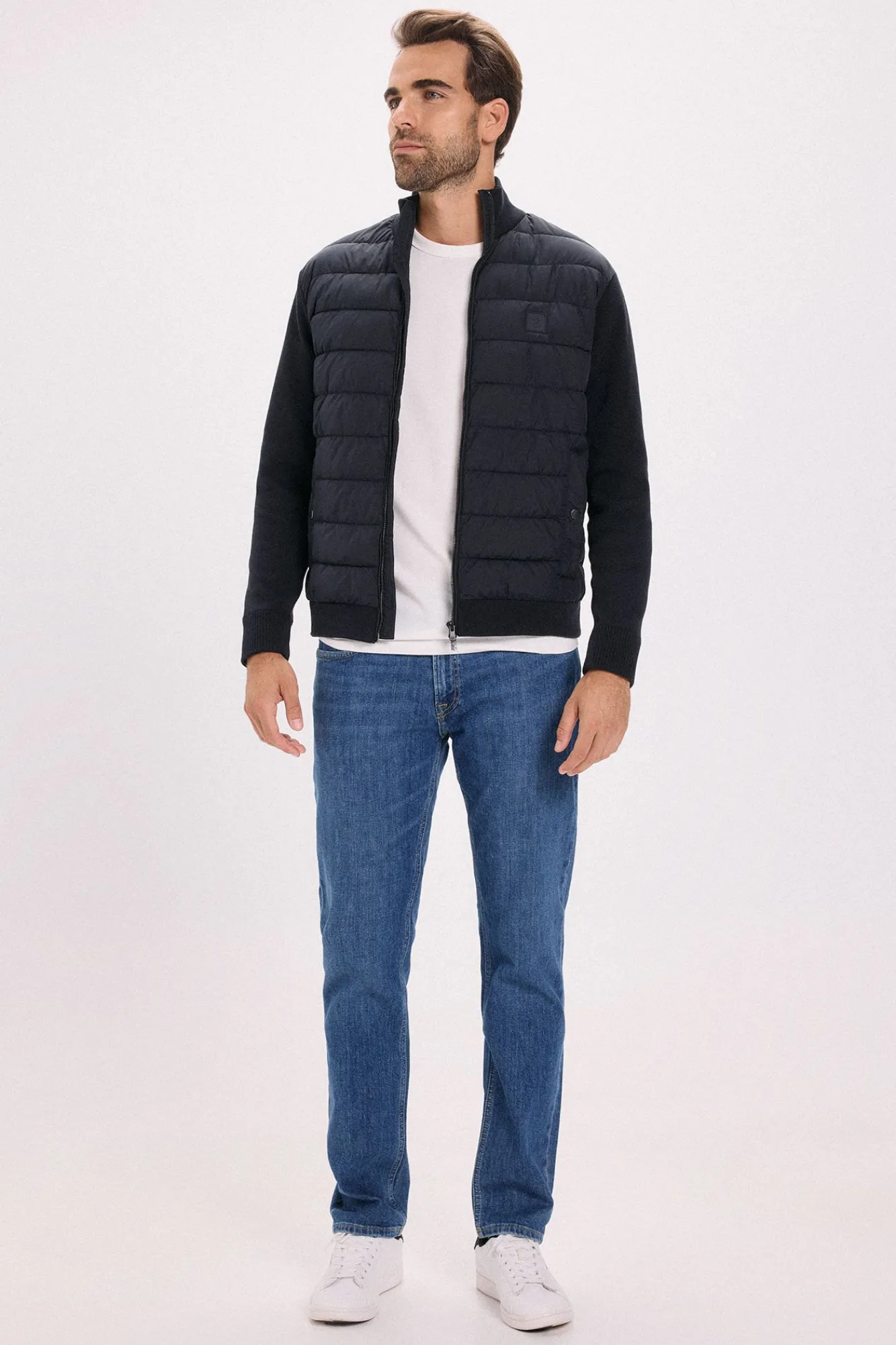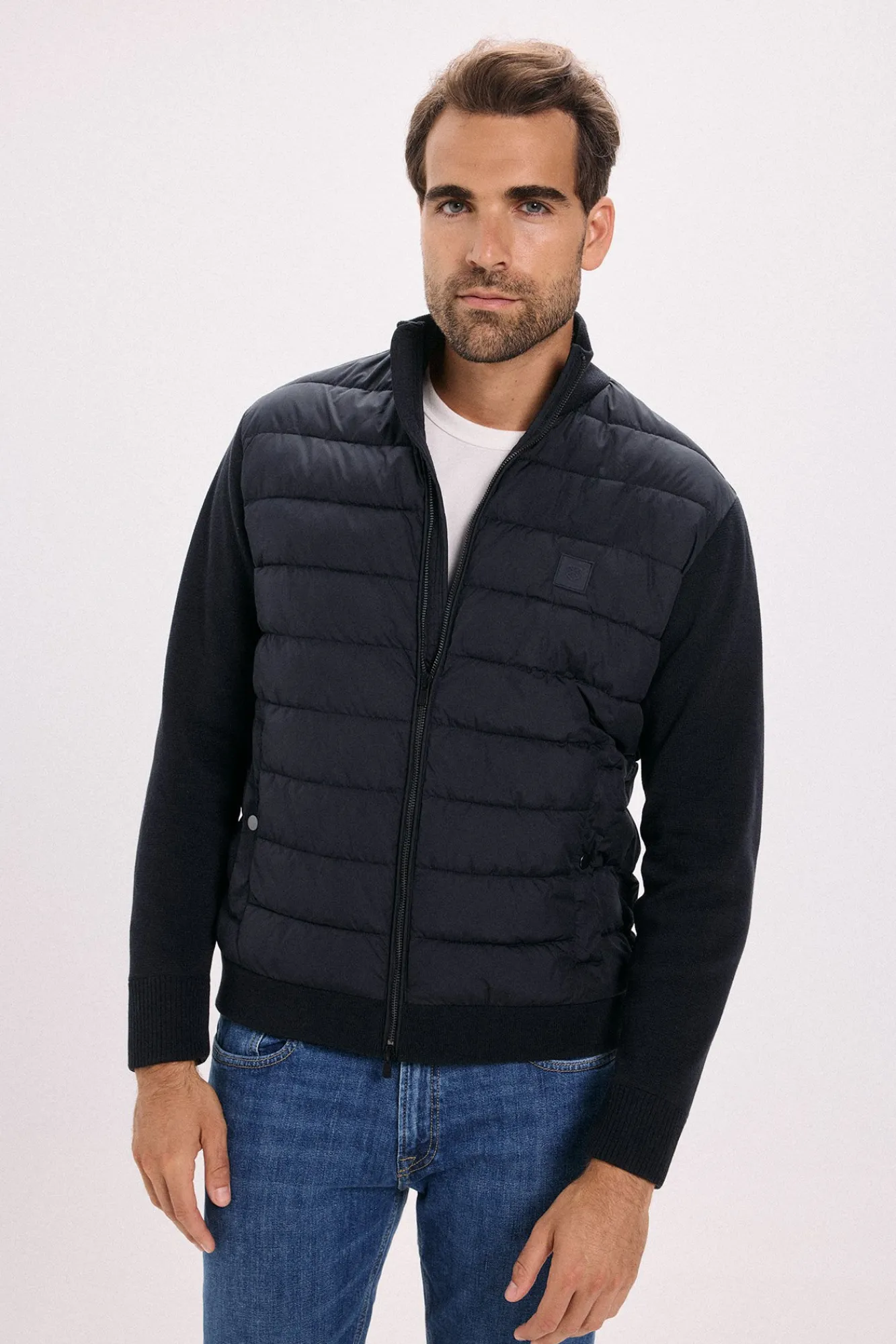 -Cuello alto y cierre delantero con cremallera