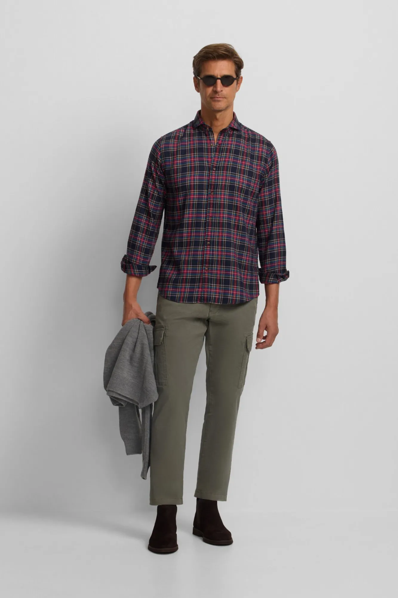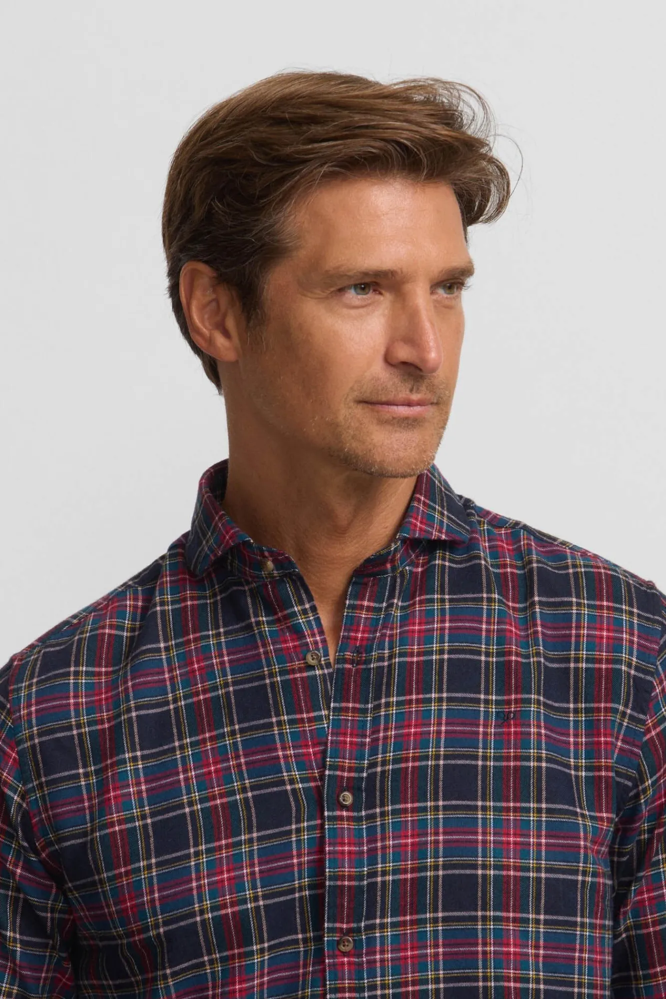Hombre Silbon Camisas>Camisa sport cuadro tartan bicolor