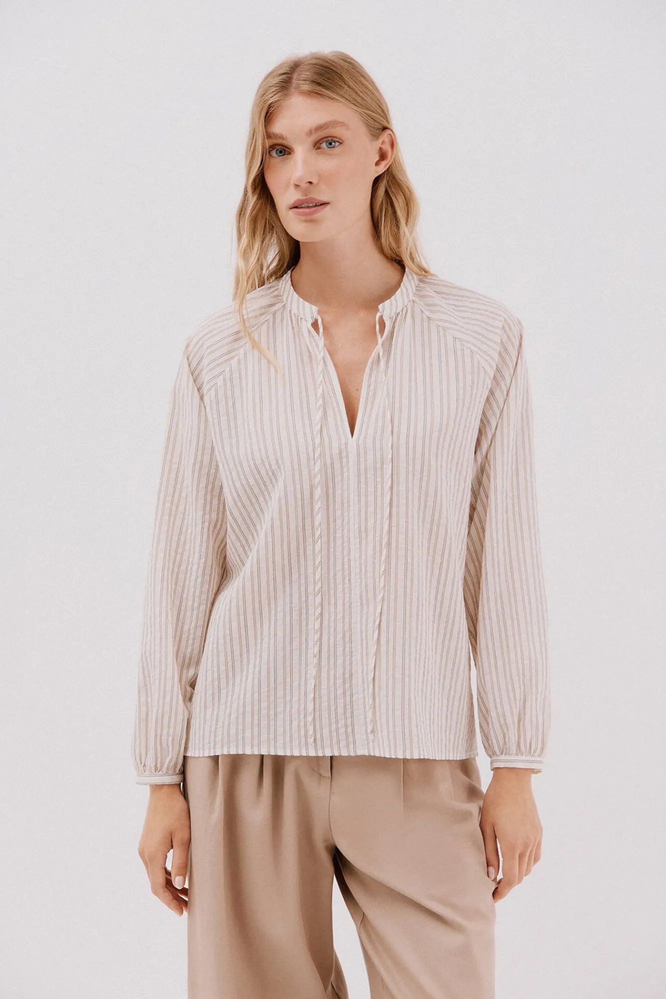-Escote pico y manga larga acabada en puño