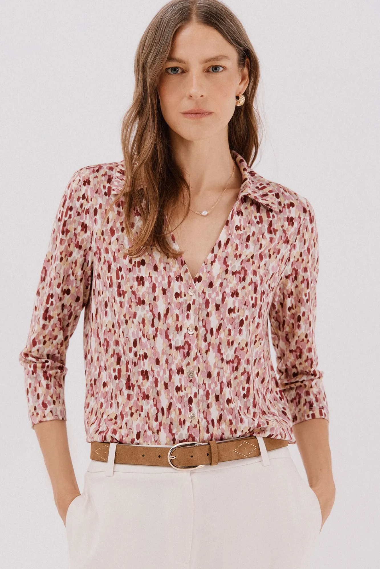 – Escote desmentido con botones dorados