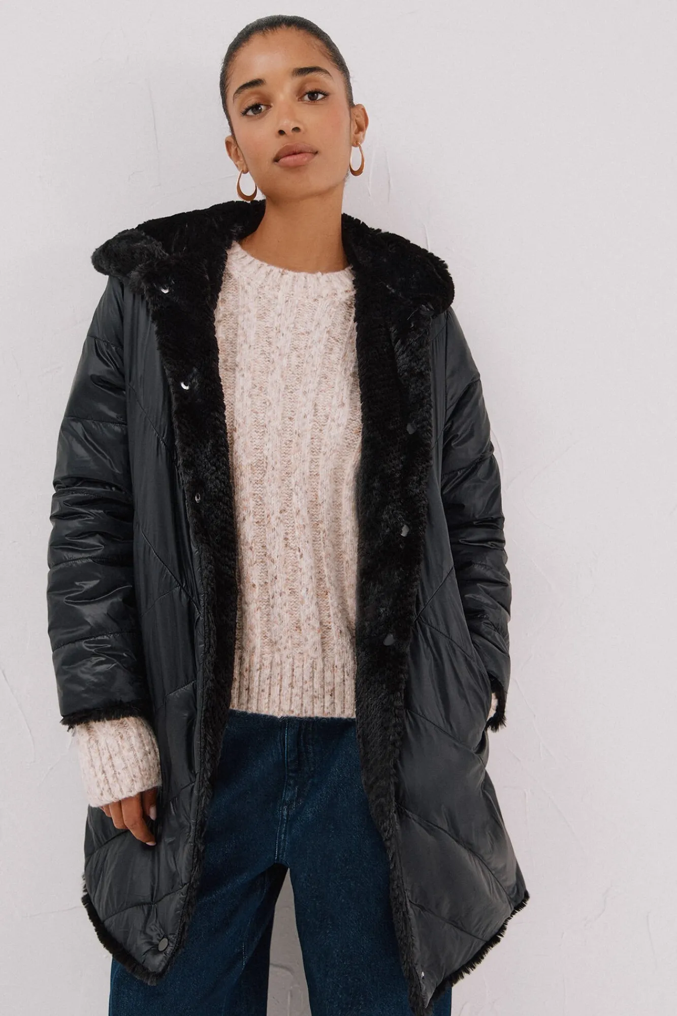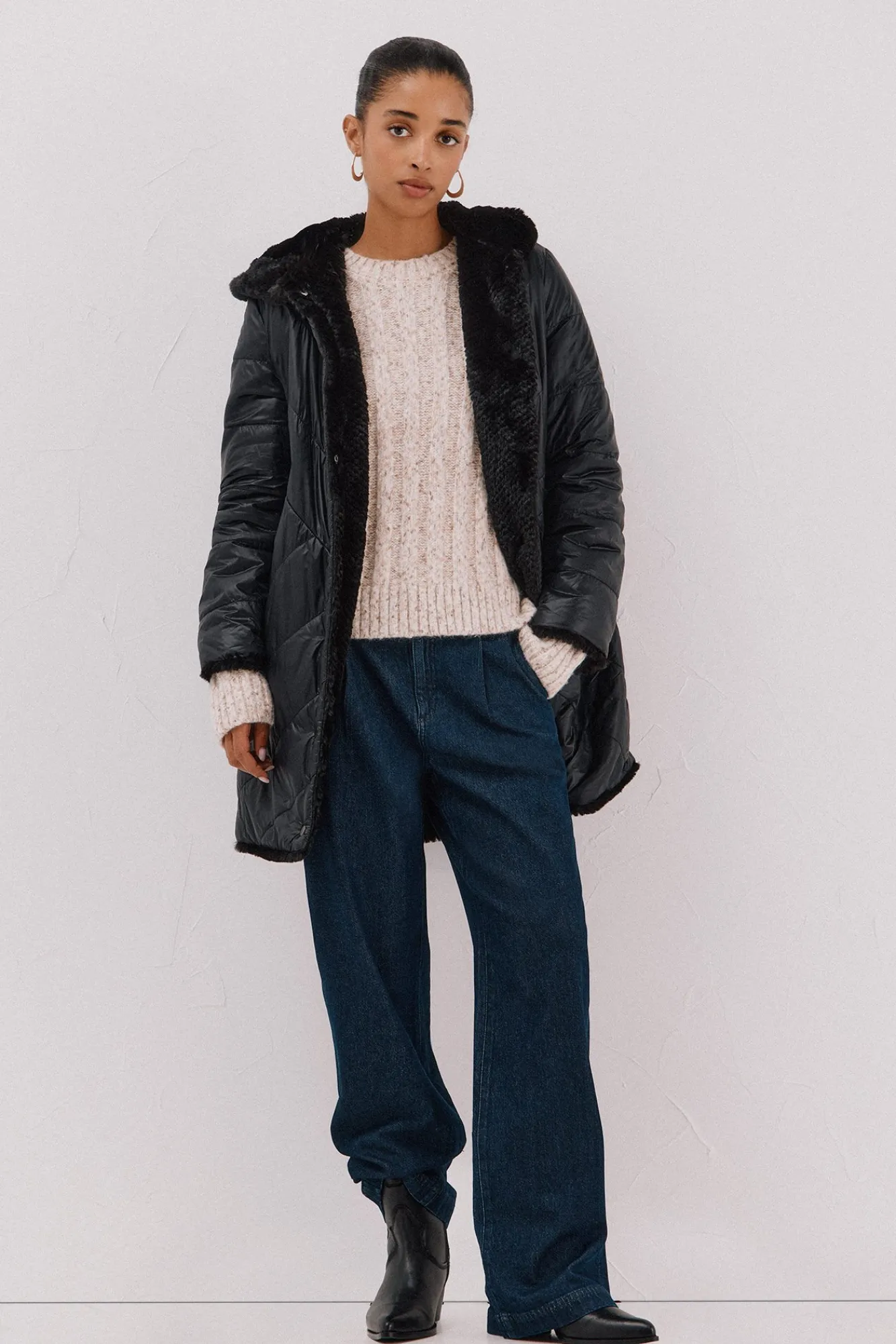 -Combina calidad con tratamiento repelente al agua con acolchado térmico ligero y tejido efecto pelo.