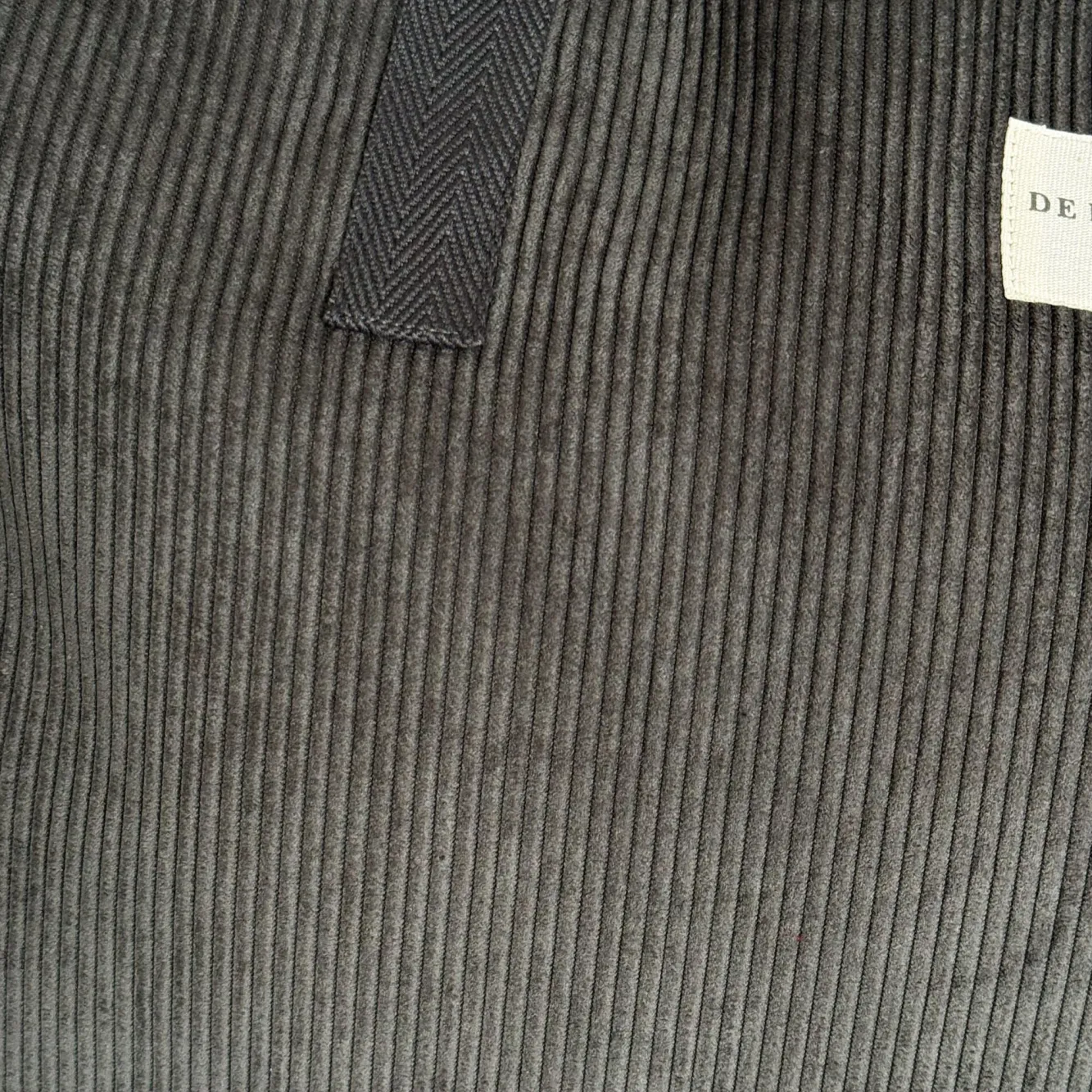 Bolsa de fin de semana con asas medianas en la parte superior de cinta de espiga de algodón de color gris oscuro. Con tejido grueso de pana gris oscuro. Bolsillo interior con cremallera. Forrado de tejido grueso de color gris en la parte interior. Para su correcto mantenimiento se aconseja lavarlo en frío a mano y no utilizar secadora.