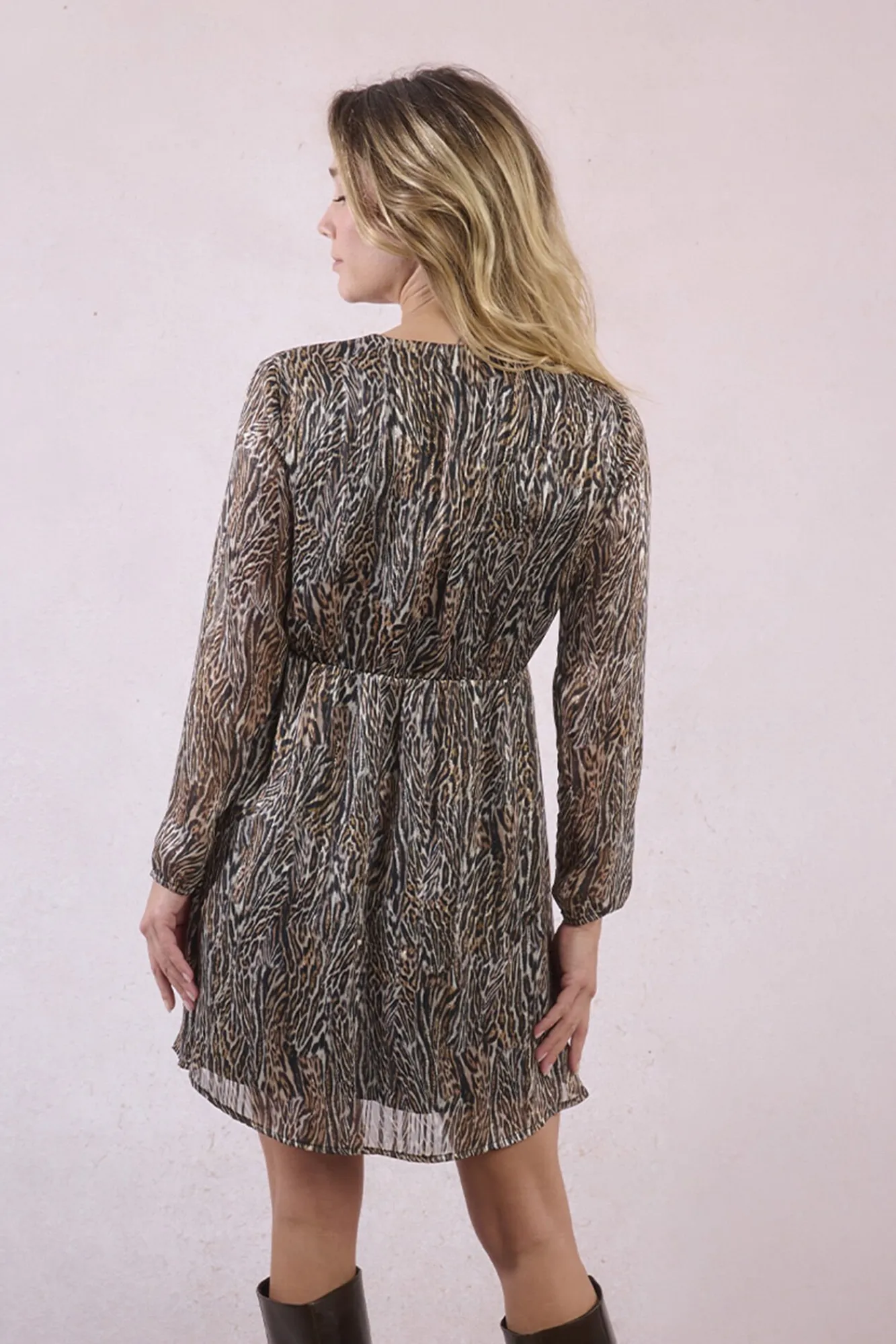 – Modelo con estampado animal y cintura ceñida.