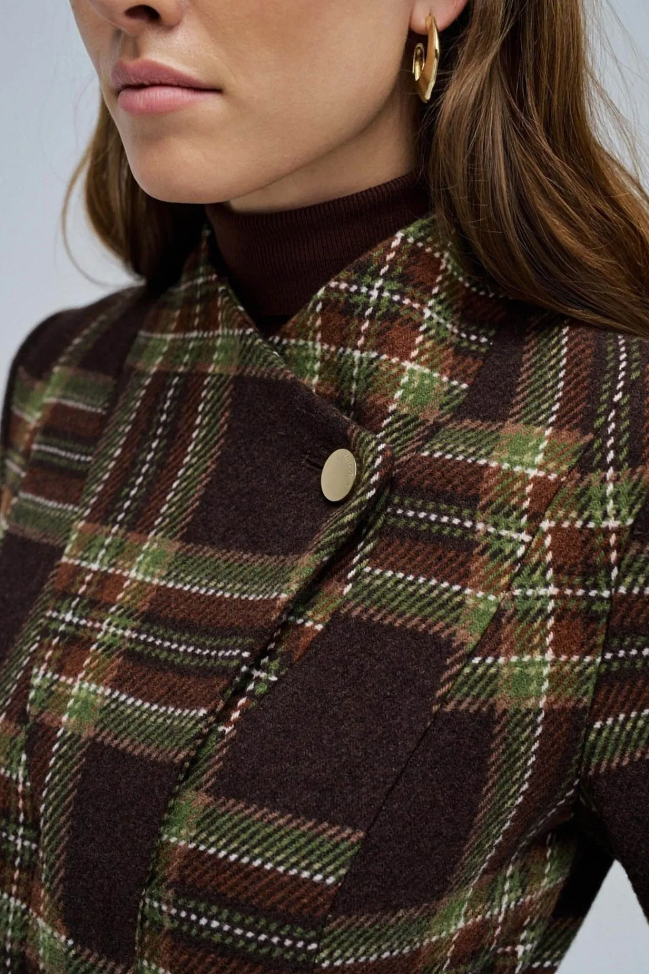 – Detalle de botón dorado en el cuello