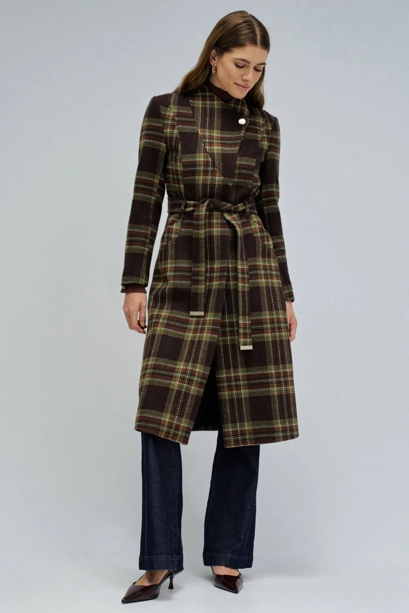 – Abrigo de paño Grace largo con cinturón