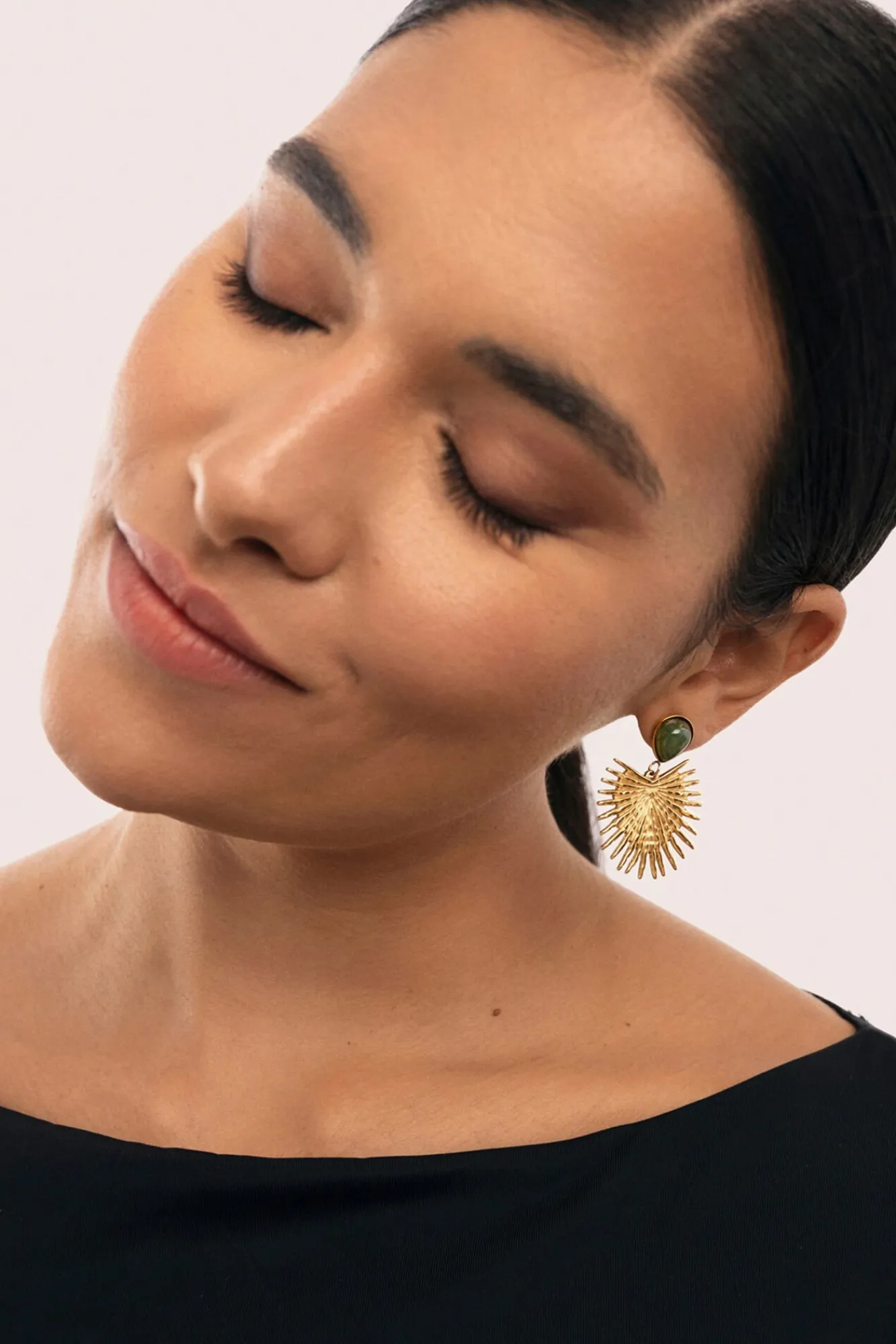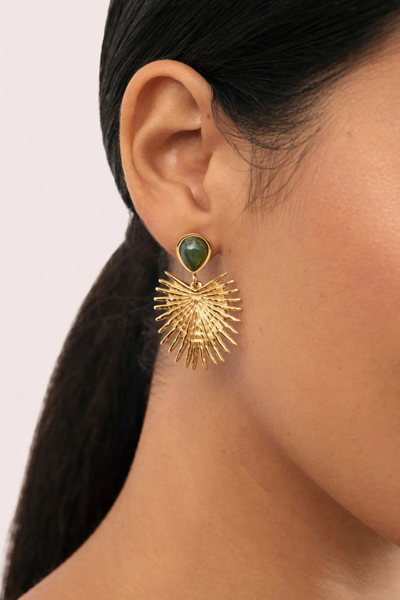 Mujer Singularu Joyería Y Bisutería>Pendientes Verde Catalina Acero Baño Oro