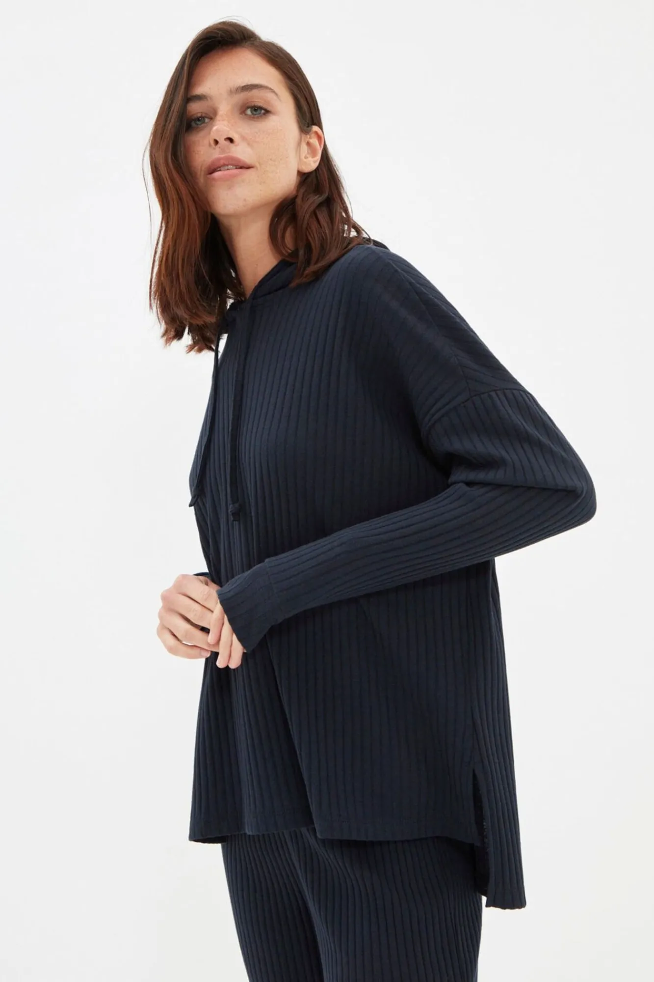 Mujer Trendyol Pijamas|Pijamas>Conjunto pijama canalé con capucha