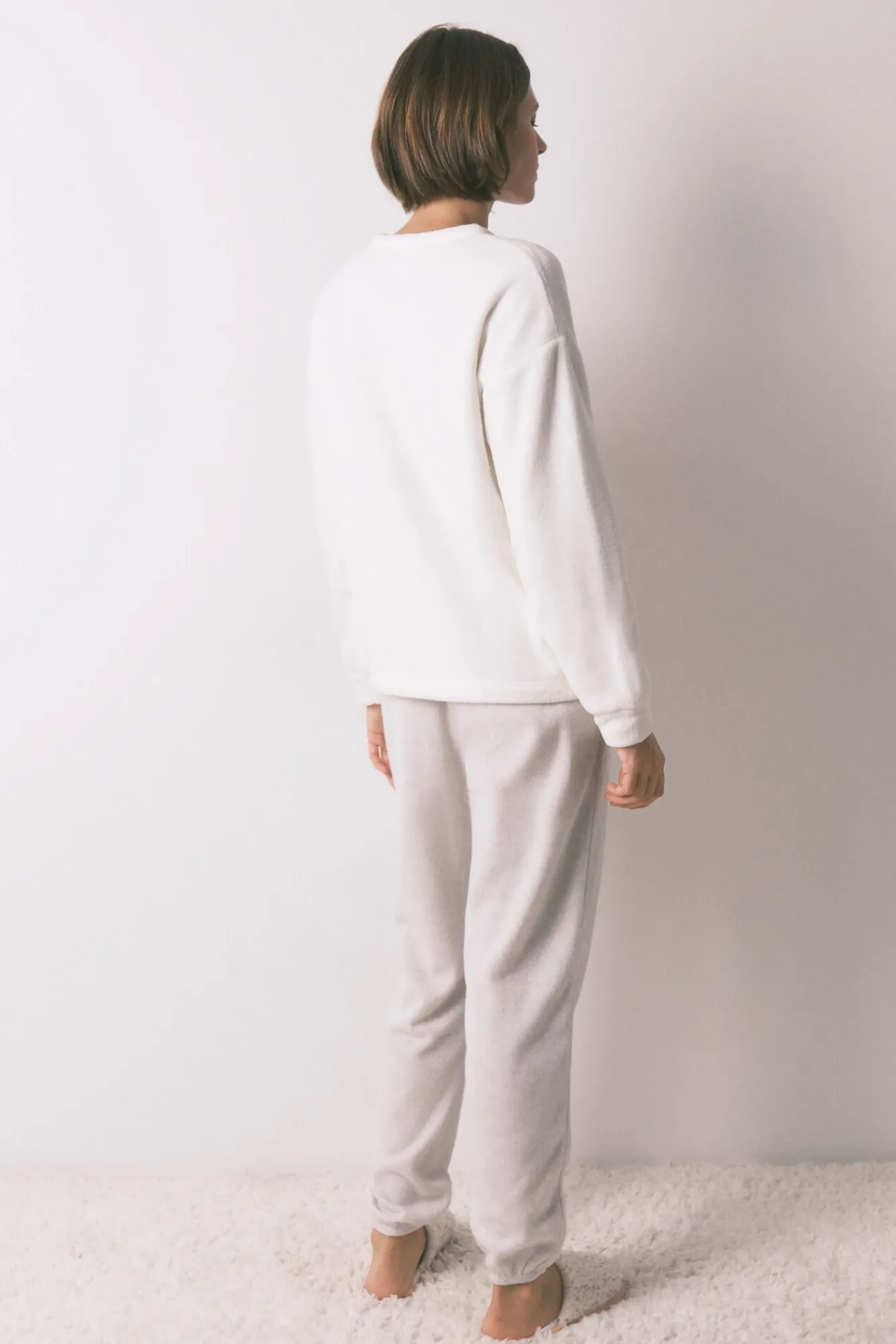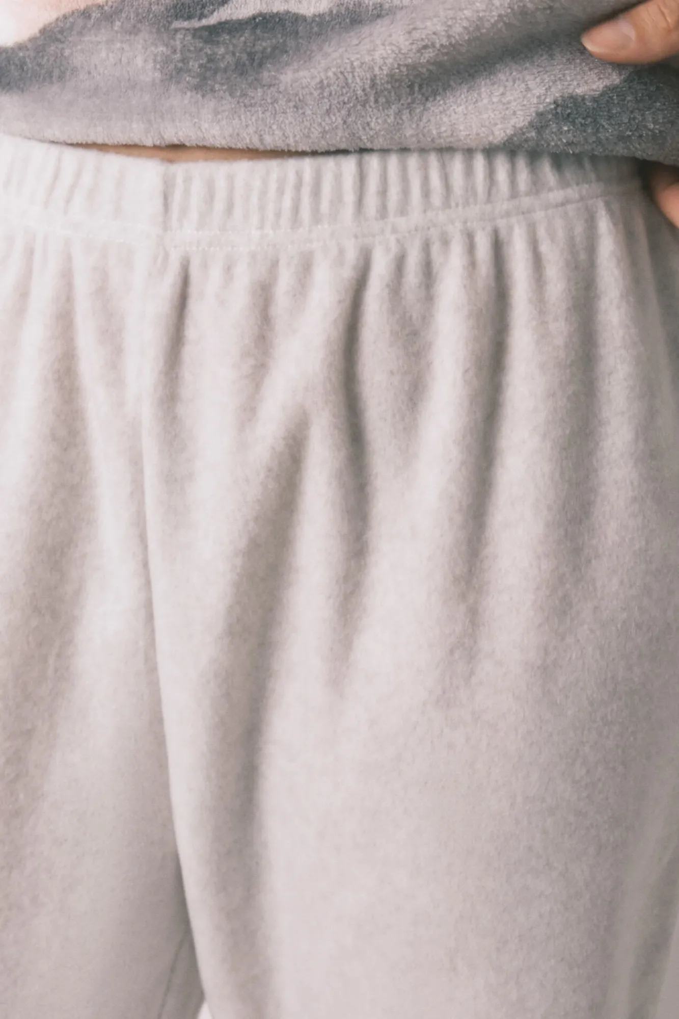 – Pantalón liso de corte ajustado, puños elásticos en el bajo y cinturilla elástica.